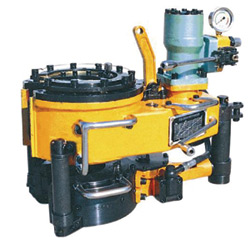 是在油田修井作业中用来上卸油管螺纹的一种专用机械,是在原XYQ3B型液压动力钳的基础上进一步改进完善而成的新产品。本产品由大扭矩摆线油马达驱动,H型手动换向阀与油马达直接匹配,结构紧凑,是目前修井用液压动力钳中较轻便的一种油管钳。 本产品具有以下特点: 1、钳头采用了先进的卡紧机构,在上卸直径为2 3/8" ,2 7/8" ,3 ½" 两种油管螺纹时,不需要更换任何零部件,卡紧性能可靠、使用寿命长。 2、两档变速级差大,高档速度快、低挡扭矩大。 3、钳头制动机构设置在钳头上盖板之上,调整、维修极为方便。 4、新型液动背钳与主钳配套形成组合钳,操纵主钳上的手动换向阀,背钳即与主钳同步夹紧或同步松开管柱,动作灵活可靠。 5、调整供油压力,可以得到各种钢级的油管上扣时所需的较佳扭矩。 二、技术参数 1.主钳 (1) 适应范围 2 3/8" , 2 7/8" " , 3 ½" 油管 (2) 额定高档扭矩 0.6~1.1 kN.m (3) 额定低档扭矩 1.8~3.0 kN.m (4) 较大扭矩 4.0 kN.m (5) 额定高档转速 100 r/min (6) 额定低档转速 30 r/min (7) 开口尺寸 95 mm (8) 移运质量 105 kg 2.背钳 (1) 适应范围 2 3/8" ",27/8" " ,3 ½" 平式及外加厚油管接箍 (2) 开口尺寸 116 mm (3) 移运质量 53kg 3、组合钳外形尺寸 650 x 430 X 550 mm 4、额定系统压 6~10 MPd 5、较大供油压力 2.5 MPa 6、额定供油量 80 L/min |