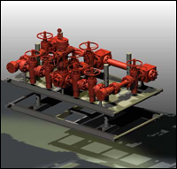 1、用途 节流管汇是控制井涌、实施油气井压力控制技术的必要设备。在防喷器关闭条件下,利用节流阀的启闭,控制一定的套压来维持井底压力始终略大于地层压力,避免地层流体进一步流入井内。此外在实施关井时,可用节流管汇泄压以实现软关井。当井内压力升高到一定极限时,通过它来放喷以保护井口。 2、组成和结构 节流管汇由节流阀、闸阀、管线、管子配件、压力表等组成。 3、工作原理 当井内压力升高时,可通过节流管汇上的节流阀(有手动可调式、液动式和固定式三种)的开启与关闭来释放井内流体以控制套压。套压很高时可通过闸阀直接放喷。 4、节流管汇规格 我公司节流管汇的压力级别分为五级,即14MPa、21MPa、35MPa、70MPa、105MPa。也可根据客户要求设计。 5、使用要求 (1)节流管汇所有部件工作压力应与所用防喷器组合的工作压力相匹配; (2)节流管汇应安装在操作人员易接近的地方,安装时必须试压,其密封试验压力应等于额定工作压力; (3)管线应尽可能平直,管线拐弯处应使用120度的铸钢弯管。管线应有足够大的孔径; (4)必须装工作压力表; (5)冬季施工,节流管汇应具有在低温条件下工作的性能。 节流管汇符合API Spec 16C标准要求: 工作压力:2,000psi ~ 15,000psi 公称通径:2-1/16” ~ 4-1/16”