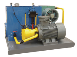 YD160 -2C型液压站主要为各种液压设备提供动力源, YD160 -2C型为防爆型。在石油、矿场等作业中,主要用于钻井用动力钳、拧扣机等设备。 本液压站具有结构简单、操作方便、安全可靠、噪声低、性能稳定、低温下能加热油温、高温下能冷却油温且油温能稳定在60℃以下等优点。 二、技术参数 1、较大工作压力 20MPa 2、公称排量 5MPa -160L /min/16MPa -120L /min 3、油箱容积 650L 4、油泵电机组型号 160SCY -250M -6-37KW 5、电机电压、频率、型号 380V-50HZ-6(防爆型) 6、额定工作油温 65℃ ~ 80℃ 7、外型尺寸 1850×1450×1340mm 8、总重量为 1300kg 9、电加热器 3 Kw×2 10、冷却器具 FL-12.5 |