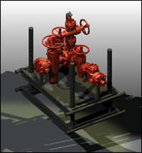 1、用途 当井口压力升高时,可通过压井管汇向井内泵入重钻井液以平衡井底压力,防止井涌和井喷的发生;可利用它所连接的放喷管线进行直接放喷,释放井底压力;也可以用来挤水泥固井作业用向井口注入清水和灭火剂。通过压井管汇单流阀,压井液或其它流体只能向井内注入,而不能回流以达到压井和其它作业的目的。 2、结构 主要由单向阀、闸阀、压力表、连接管线等组成。它一端与防喷器四通相连,另一端与注入泵相连。压井管汇与节流管汇均按API标准设计并配套使用。目前我公司生产的压井管汇压力级别有14MPa、21MPa、35MPa、70MPa、105MPa等。 3、使用要求 (1)所有管线、闸阀、单流阀等的工作压力必须与所采用的防喷器组合的工作压力匹配; (2)压井管汇不可作日常灌注钻井液的管线。